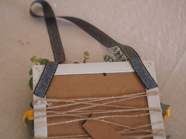Ostao je još samo jedan korak i to ako želite okvir koristiti na vratima, umjesto vijenca. Sa stražnje strane ćete zalijepiti traku za vješanje, kao što je prikazano na slici.