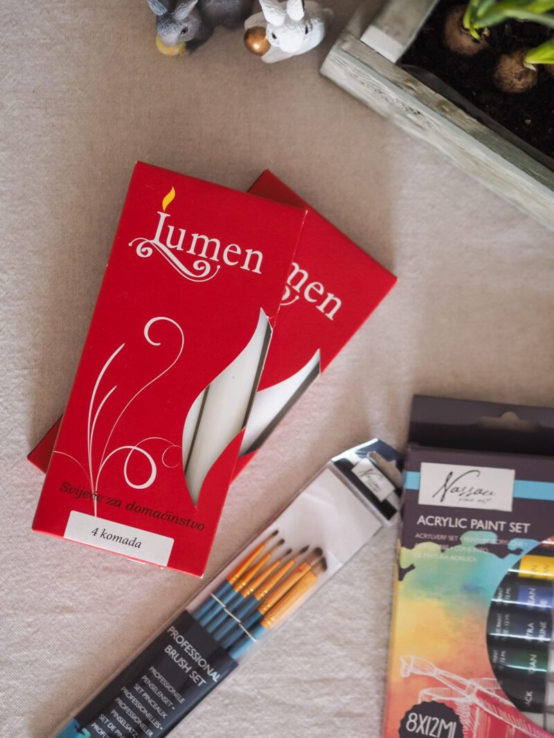 Baš sve za ovaj DIY pronašla sam u Offertissimi – svijeće, akrilne boje i kistove.