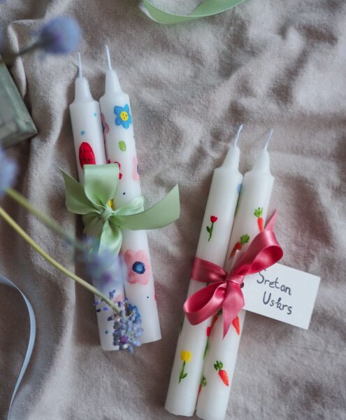 Proljeće i Uskrs nam kucaju na vrata, te vam zato u suradnji s Mateom Halilović donosimo jedan veseli, šareni, cvjetni DIY – svijeće oslikane akrilnim bojama.