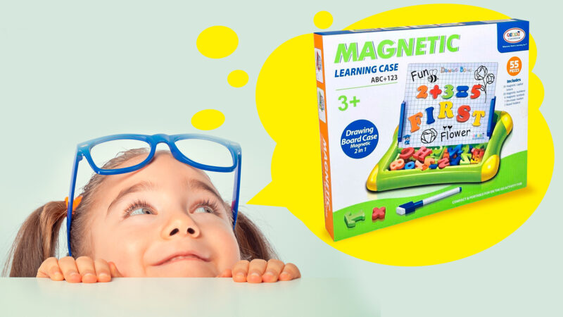 Slova, brojke i puno mašte! Ploča za pisanje s magnetima pravi je hit za male genijalce. Pišu flomasterom, lijepe magnetiće sa slovima i brojevima, brišu i kreću ispočetka. Sve je lakše kad se uči s osmijehom!