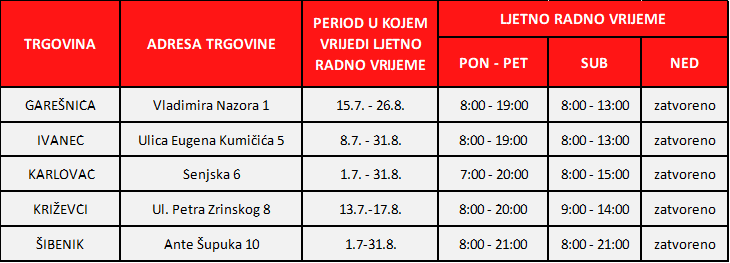 Dragi naši kupci, niže navedene poslovnice radit će prema privremenom ljetnom radnom vremenu. Sve detalje pogledajte u nastavku. Sve ostale Offertissima poslovnice rade prema redovnom radnom vremenu.