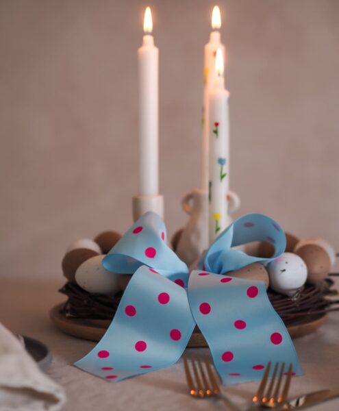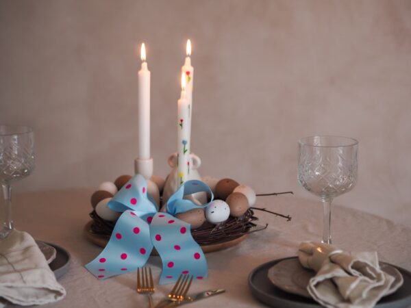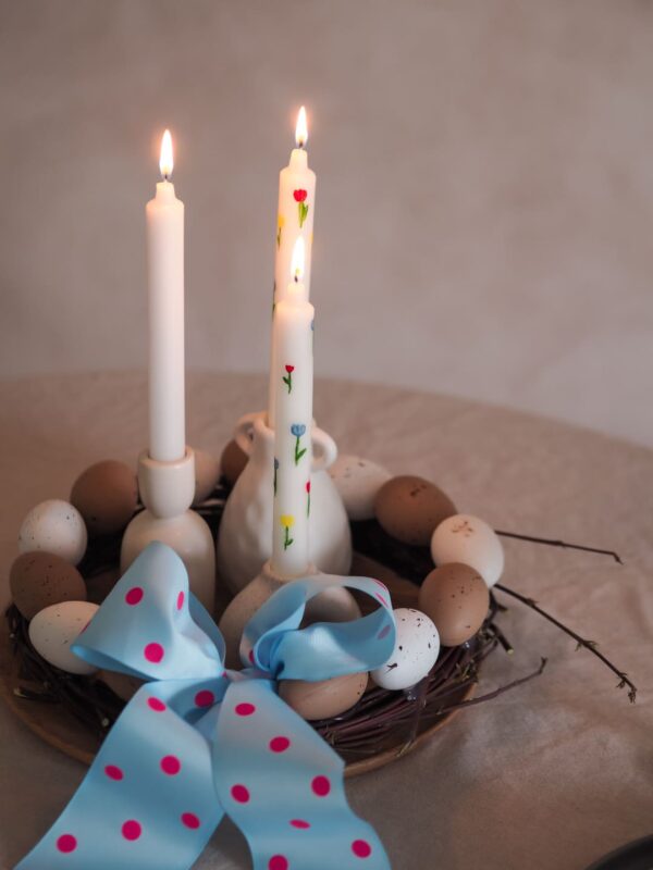 Drugi je kao centralni ukras na blagovaonskom stolu. U tom slučaju bih u sredinu vijenca stavila nekoliko svijeća. Prethodni put sam vam pokazala kako ih sami možete oslikati.